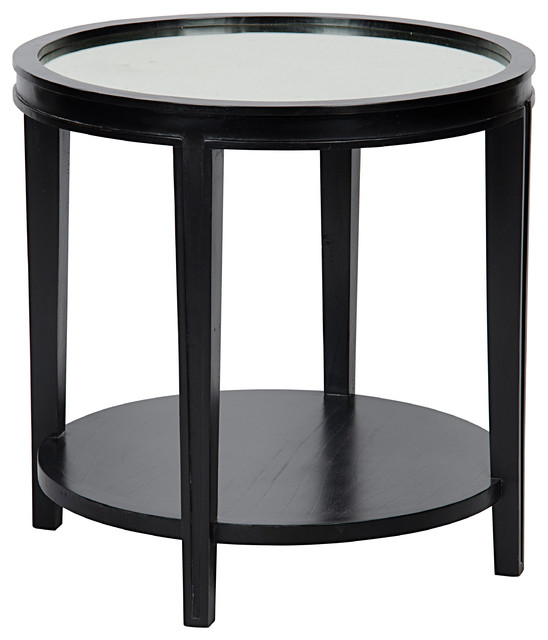 Lester Mirrored Side Table Round In Black And Nickel Finish