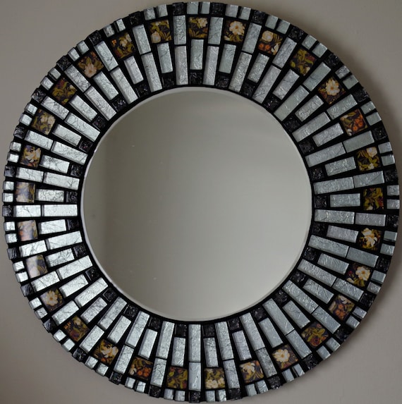 Wall Mirror In Black Silver Green Mosaic Mirror Bathroom Etsy