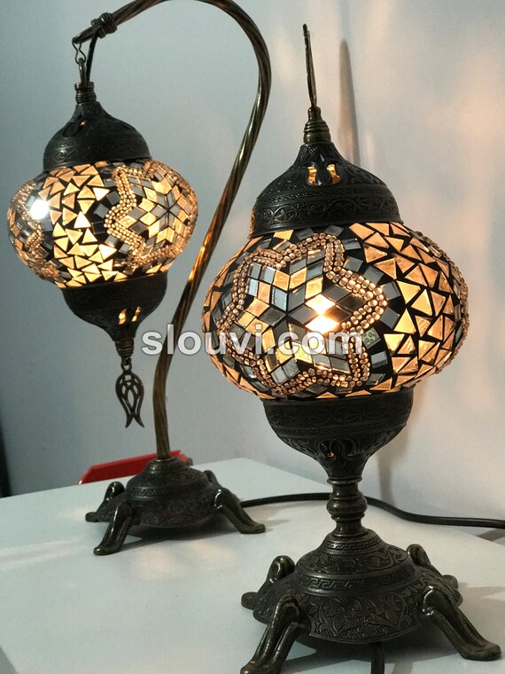 Pair Of Swan Neck And Table Lamp Turkish Mosaic Lamp Black Etsy