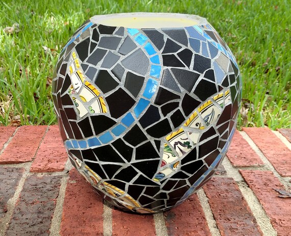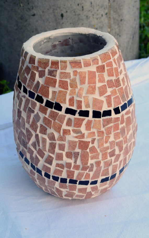 Hand Crafted Mosaic Vase With Black Design Etsy