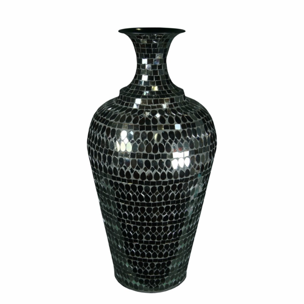 Metal Floor Vase With Glass Mosaic In Elegant Silver Black