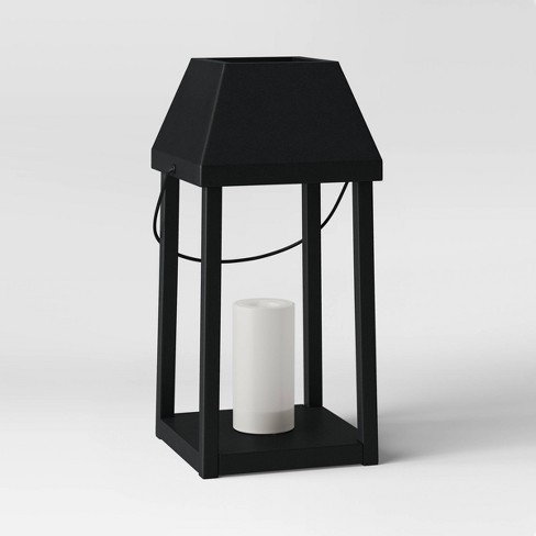 Metal Outdoor Lantern With Black Hood And Candle Black Threshold
