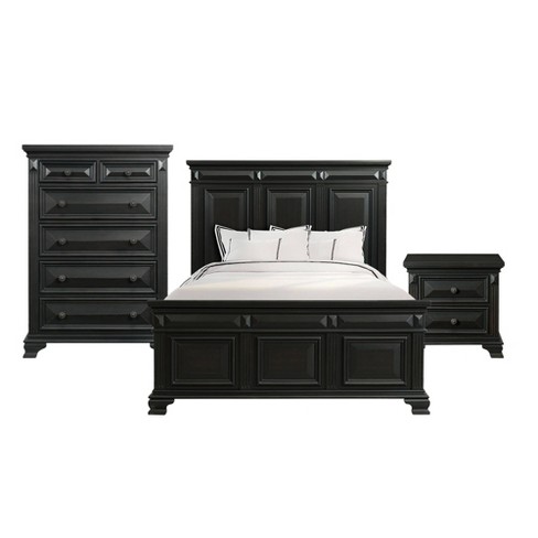 3pc King Trent Panel Bedroom Set Antique Black Picket House