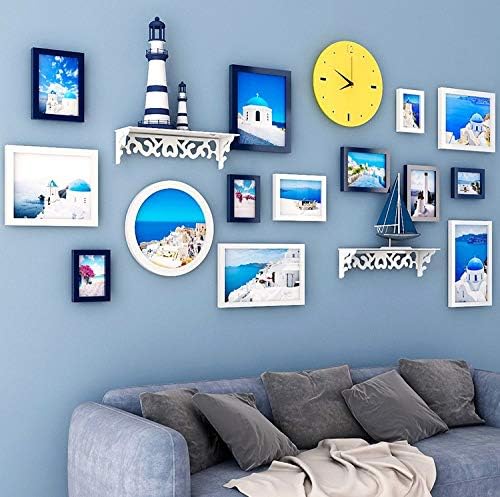 Amazon Com Creative Solid Wood Photo Wall Black White Photo Picture Frame Collage Modern Simple Large Multi Photo Frames Wall Set 17 Frames For Home Office Bedroom Color White Blue