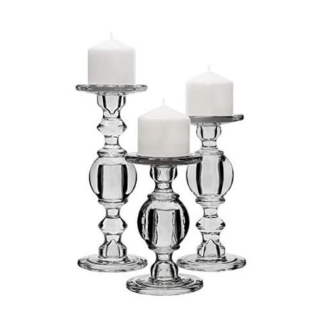 Glass Candle Holder Set Of 3 Pillar Holders Candlesticks Stemmed