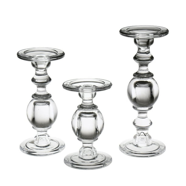 Modern Glass Candlesticks Taper Pillar Candle Holders Set Of 3