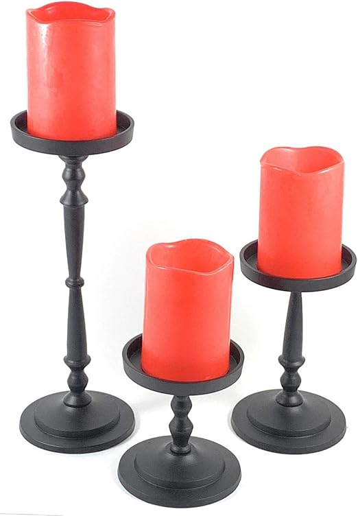 Amazon Com Vibhsa Pillar Candle Holders Set Of 3 Matte Black