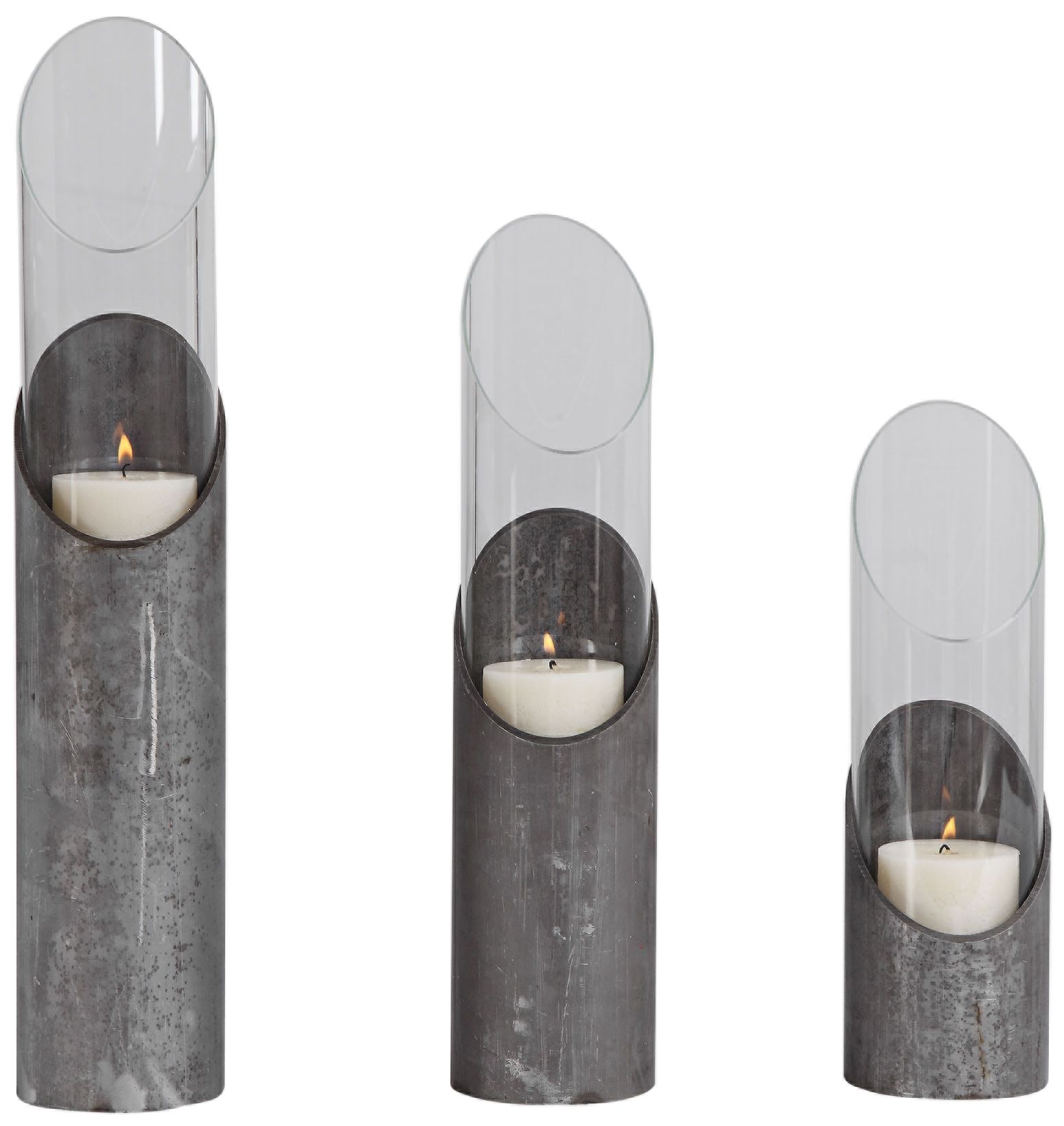 Distressed Gray Simple Candle Holders Set Of 3 Kirklands