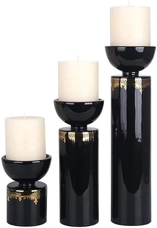 Amazon Com Vincigant Black Pillar Candle Holders Set Of 3 For