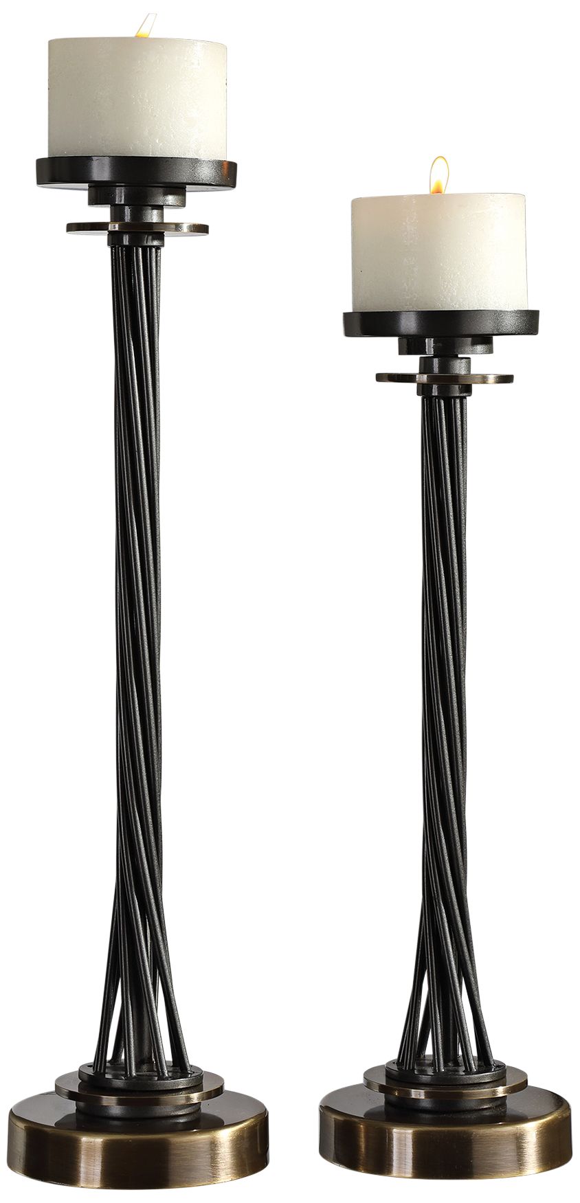 Uttermost Kendra Twisted Black Pillar Candle Holder Set Of 2