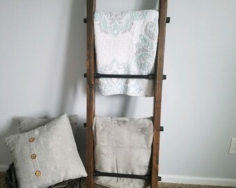 Rustic 6ft Industrial Pipe And Wood Blanket Ladder Wood Etsy