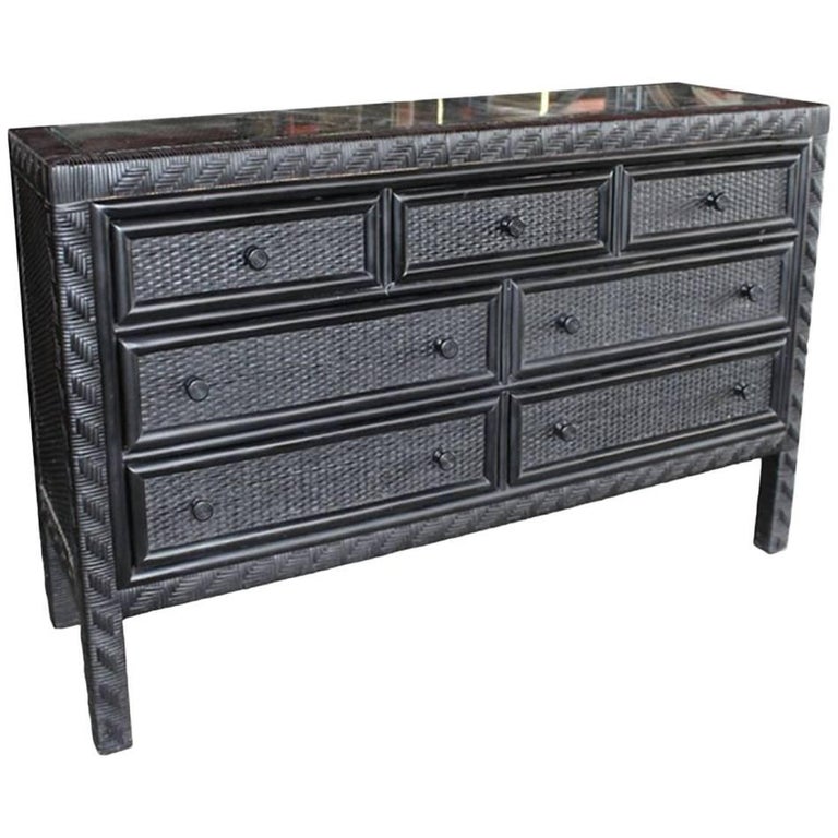 1980s Black Rattan Seven Drawers Console Table For Sale At 1stdibs