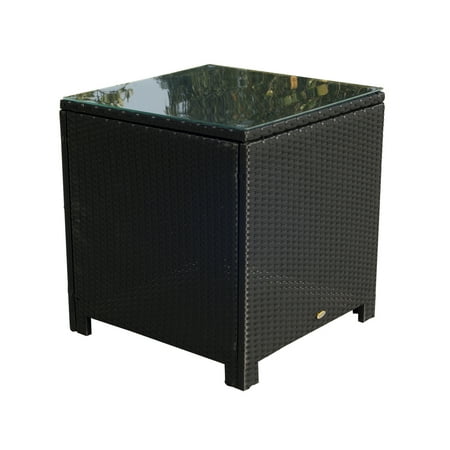 Rett004bk Kinbor Outdoor Wicker Rattan Side Table Glass Top Patio