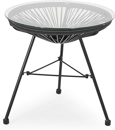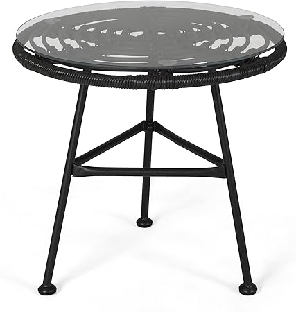 Amazon Com Rodney Outdoor Woven Faux Rattan Side Table With Glass