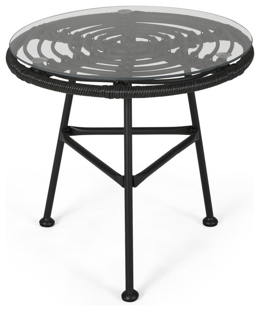 Puerta Wicker Side Table Mixed Black Christopher Knight Home