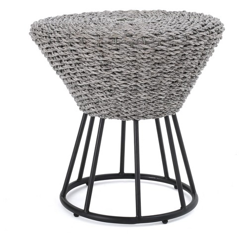 Crete Round Wicker Side Table Gray Christopher Knight Home