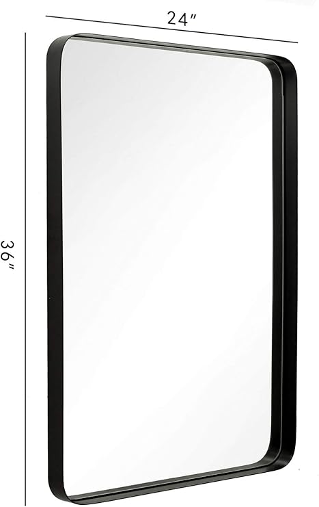 24 X 36 Rectangular Decorative Mirror With Rounded Corners Black