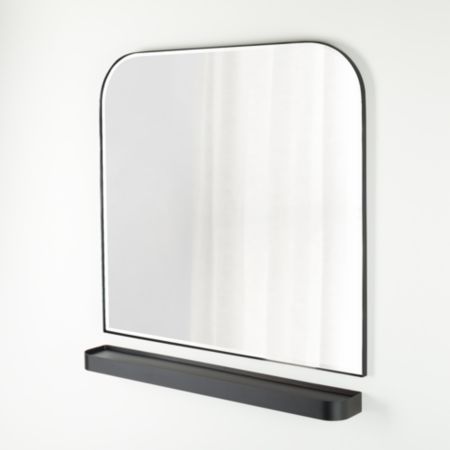 Black Almost Square Bathroom Mirror With Shelf Rockett St George