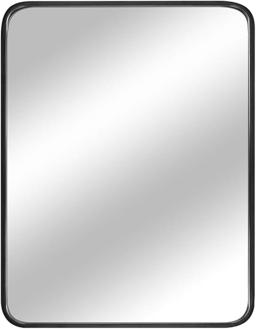 Amazon Com Mirror Trend 22 X 30 Inch Large Rectangular Wall Mirror With Glass Panel And Black Metal Framed Rounded Corner Deep Set Design For Bathroom Living Room Or