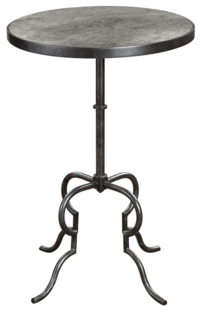 Quad Loop Antique Nickel And Black Granite Round Accent Table