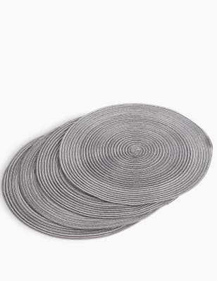 Pack Of 4 Round Woven Placemats Metallic Black Silver Thread