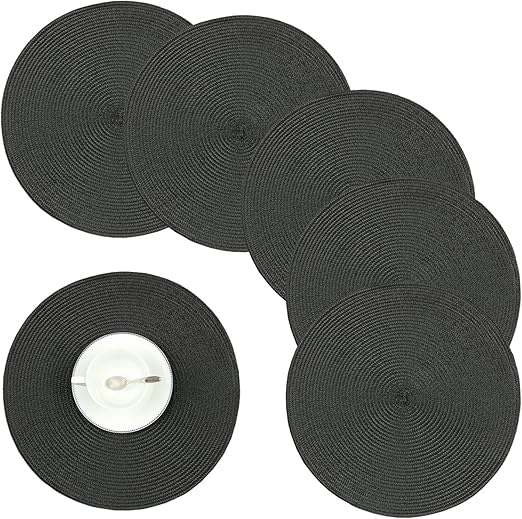 Dii Round Woven Placemat Set Of 6 Black Perfect For Halloween