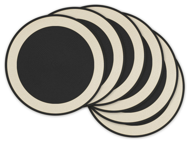 Woven Round Placemat Border Black Set Of 6 Contemporary