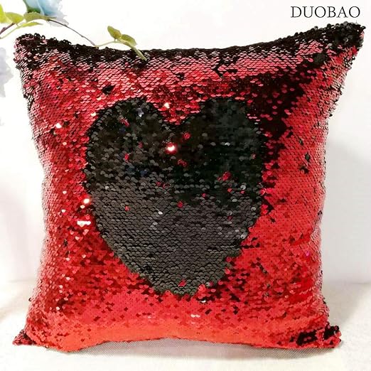 Aitliving Sequins Pillow Cover Love Heart Throw Pillow Shell 18x18