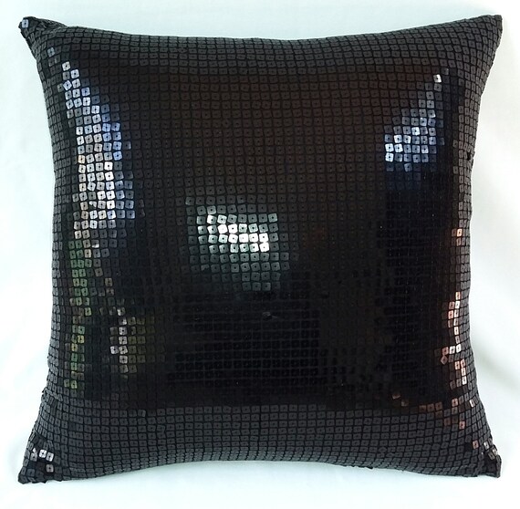 Black Sequin Throw Pillow Cover Black Decorative Pillow Shiny Etsy
