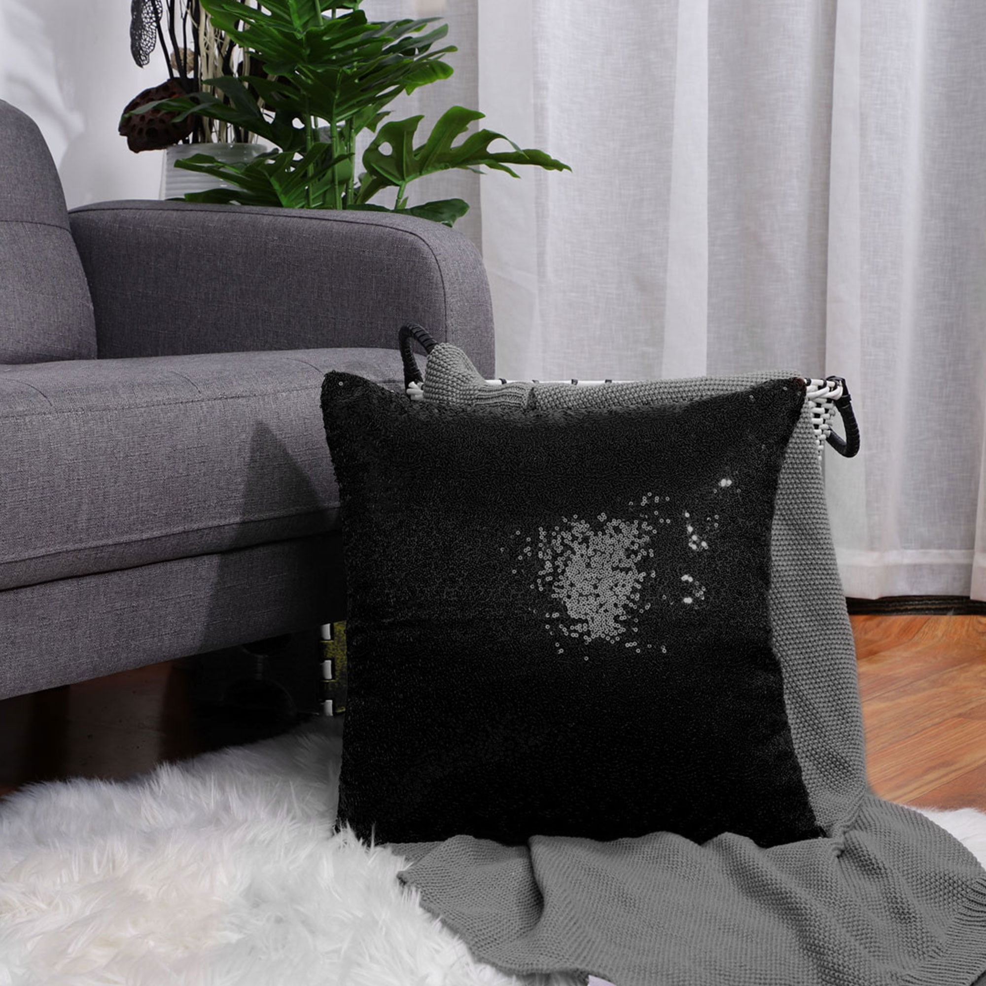Decorative Black Square Full Sequin Throw Pillow Sequin Throw