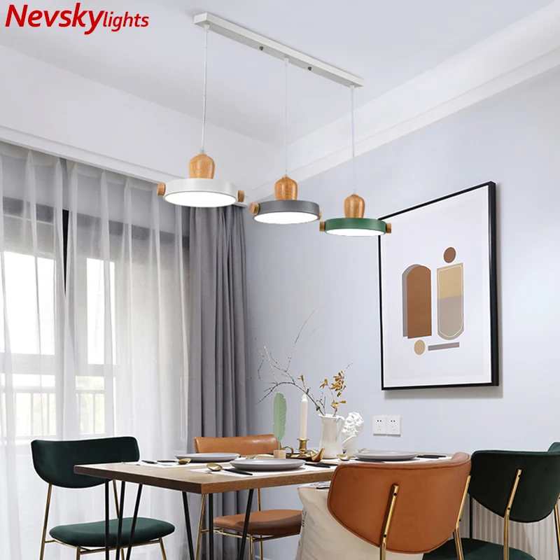 Black Shade Pendant Lamps Modern Wood Lighting Dining Room Hang