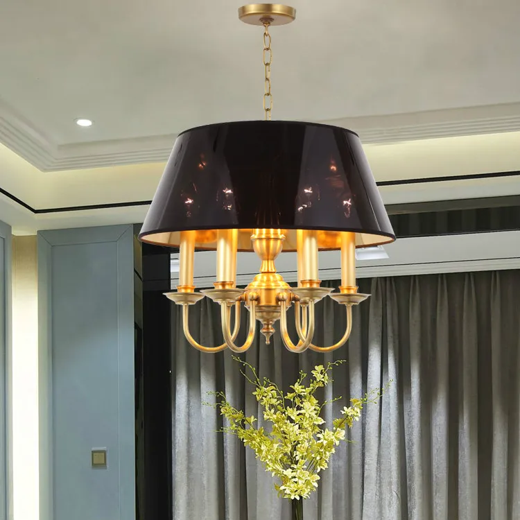 Modern European Simple Black Gold Inside Pvc Fabric Shade Pendant