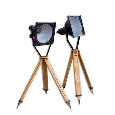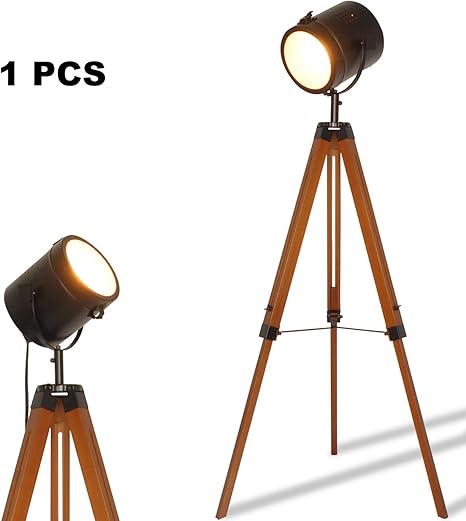 Vintage Spotlight Floor Lamp With Black Wooden Tripod Stand Floor
