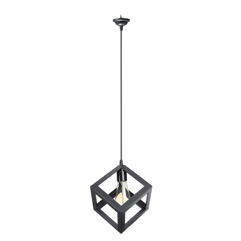Doxiy Vintage Led Square Metal Cage Ceiling Light Square Pendant Lamp Lighting Black Intl Lazada Ph