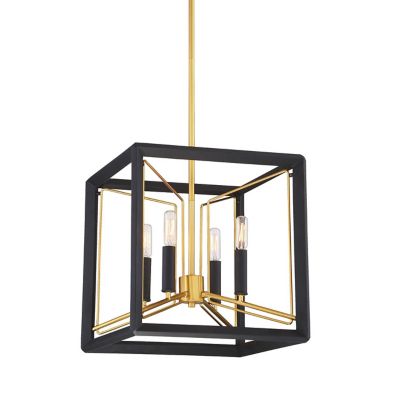 Fifth And Main Lighting Austin 1 Light Black Frame Square Pendant With Antique Brass Socket Hd 1548 The Home Depot