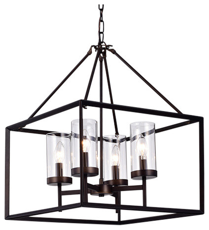 Anson Clear Pillar Glass Antique Bronze 4 Light Square Pendant Transitional Pendant Lighting By Warehouse Of Tiffany