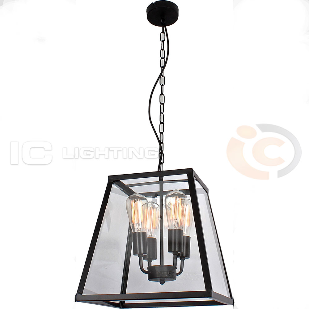 Industrial Loft Black Metal Clear Glass Square Box 4 Lights Kitchen Pendant Lamp Ebay