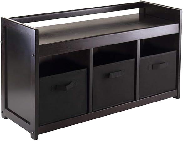 Winsome Verona Storage Bench With 3 Foldable Black Baskets In Walnut