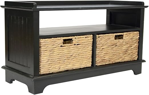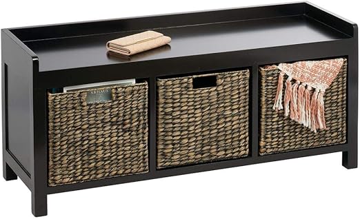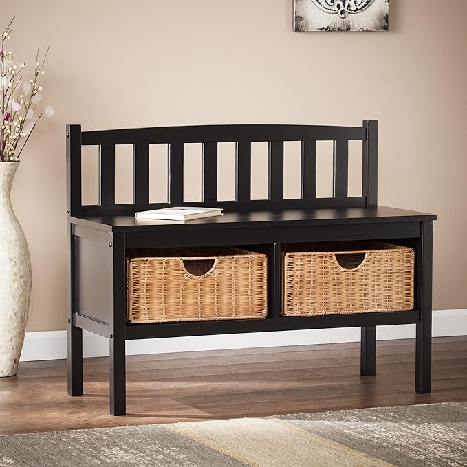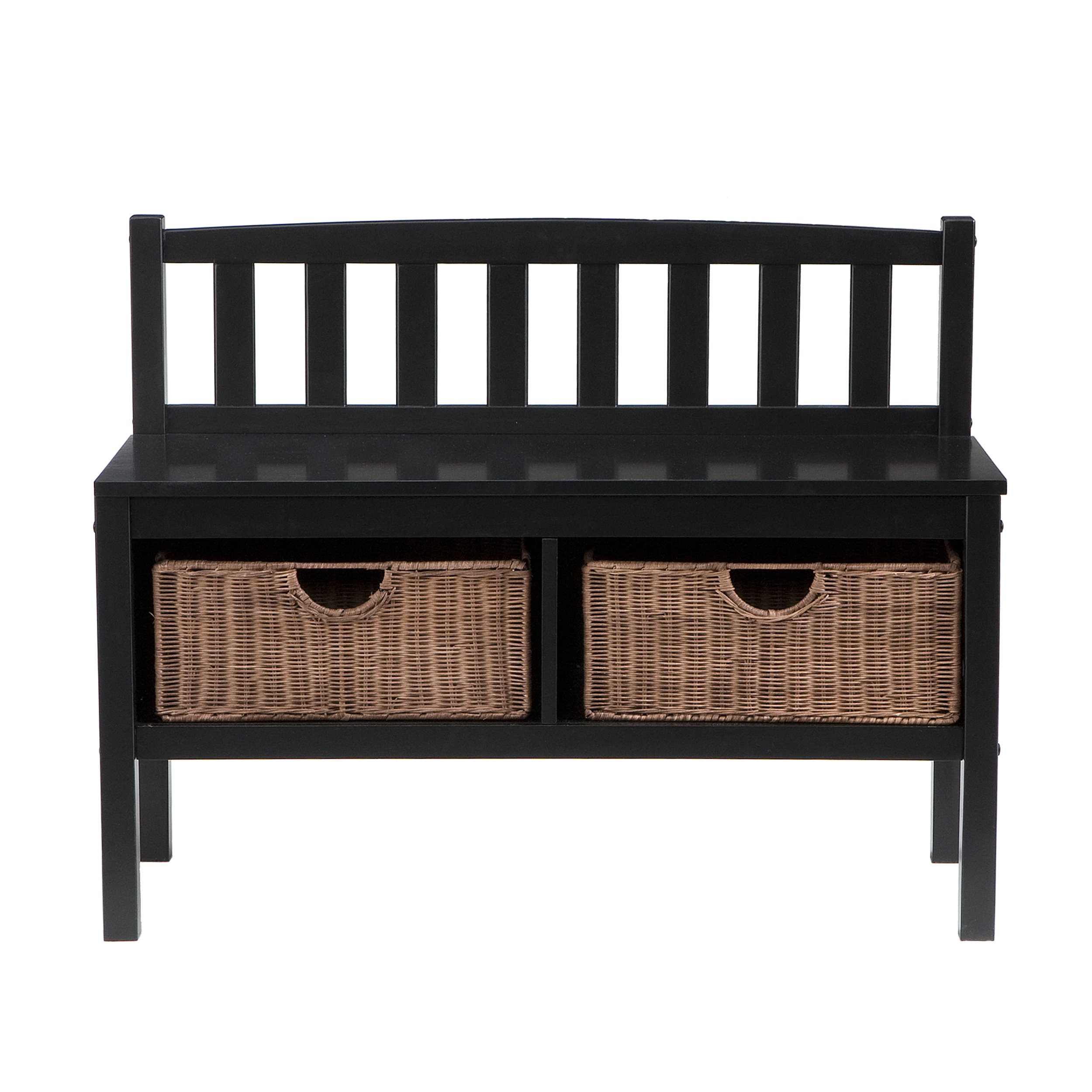 Black Bench W Brown Rattan Baskets Southern Enterprises
