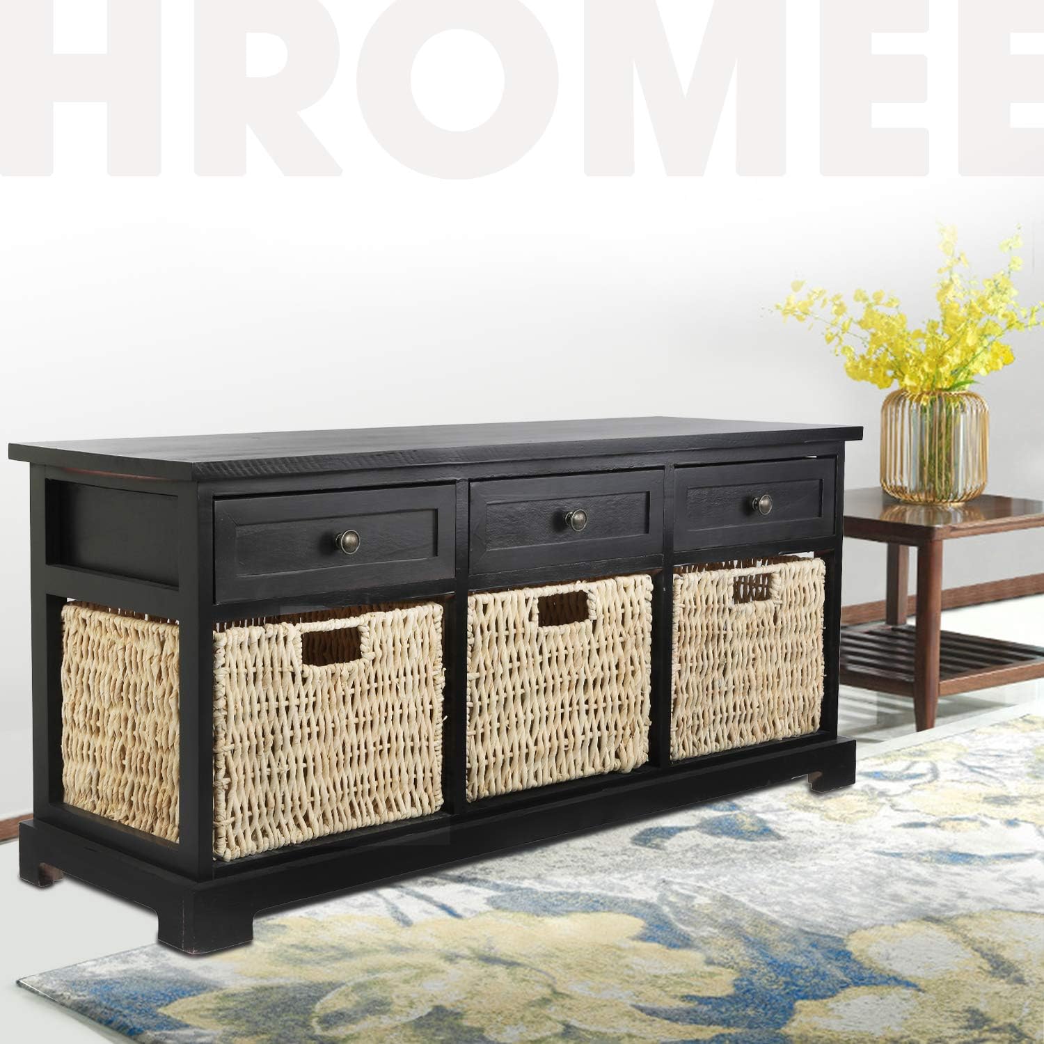 Hromee Entryway Storage Bench With 3 Rattan Basket And Drawer