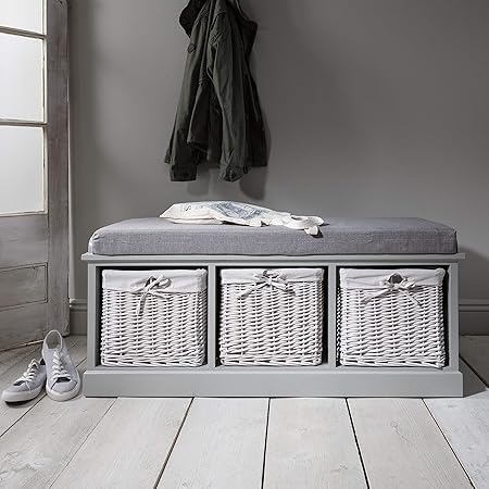 Laura James Grey Storage Bench With Cushion Hallway Shoe Cabinet