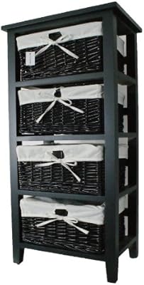 Ryan Black Storage Cabinet With 4 Wicker Baskets Drawer Storage