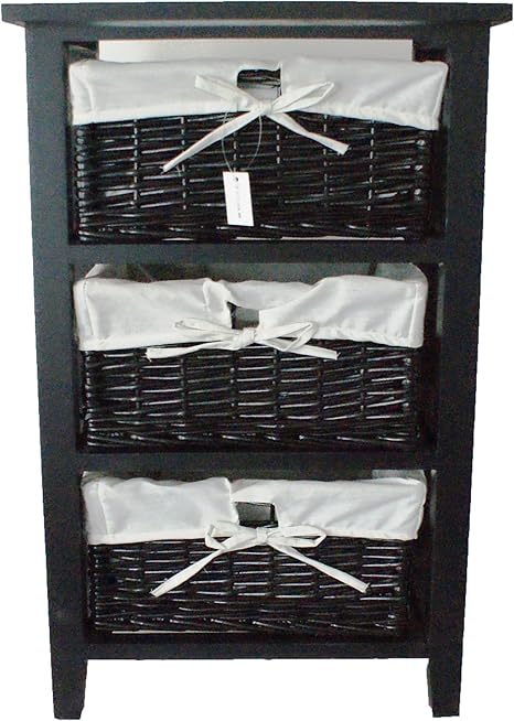 Woodluv 3 Drawer Wooden Storage Cabinet With Wicker Drawers