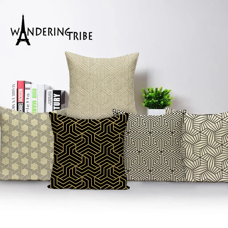 Geometric Cushion Cover Yellow Black Striped Decorative Pillows