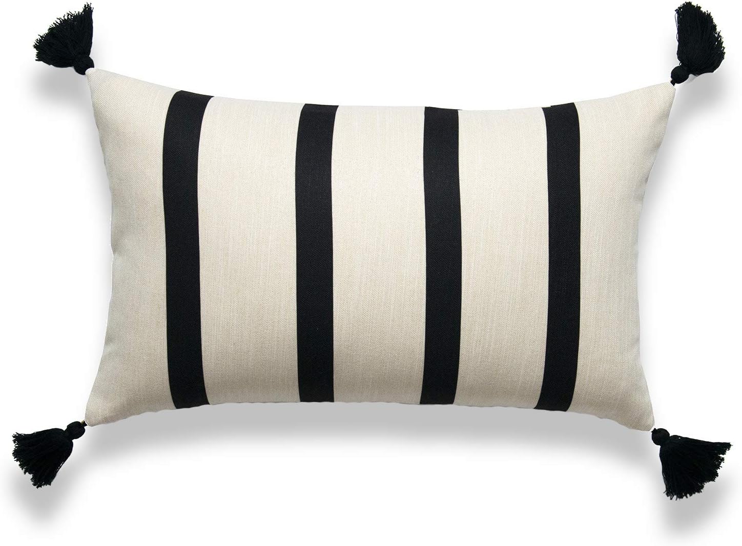 Cream Black Striped Pillow Cover With Black Tassels Kelly Modern