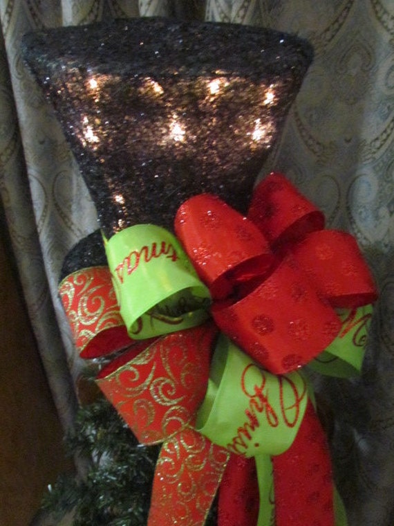 Black Top Hat Christmas Tree Topper In Red Lime Green And A Touch