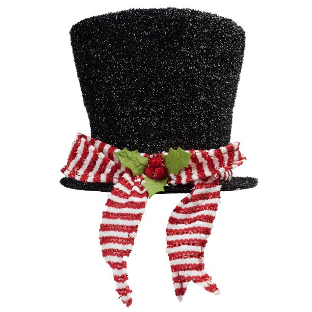 Holiday Time Top Hat Tree Topper Black Metallic With Red And White