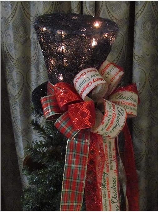 Lighted Christmas Tree Topper Black Top Hat Tree Topper Bow Frosty