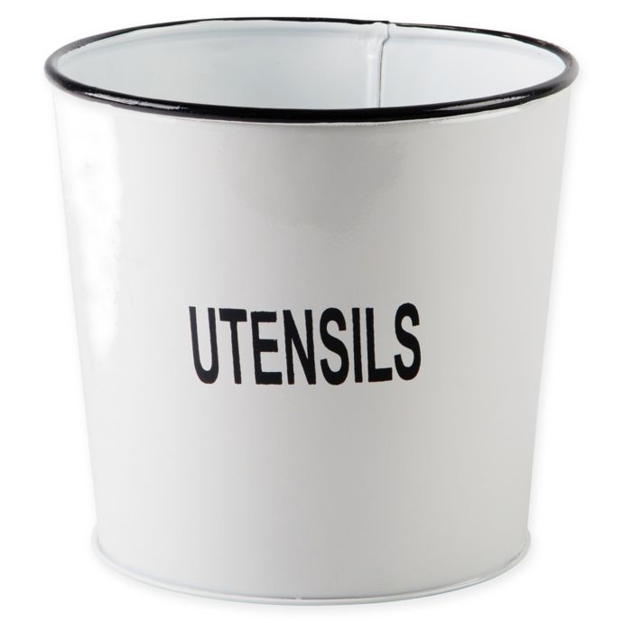 Home Essentials Beyond Round Enamel Utensil Crock In White Black