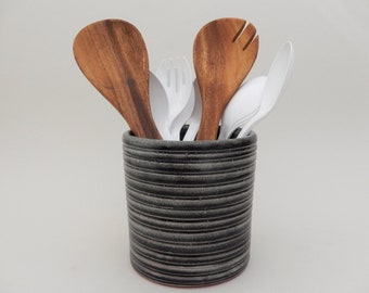 Pottery Utensil Holder Small Black Ceramic Charcoal Gray Etsy